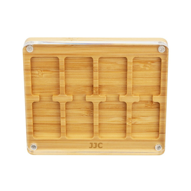 The JJC CW NS2 Game Card Case is a stylish storage case made from bamboo wood for 8 Nintendo Switch game cards. The custom milled interior ensures that the memory cards stay in position. The lid of the Game Card Case is made of transparent acrylic. The magnetic locking system makes it easy to open and close the Game Card Case.,