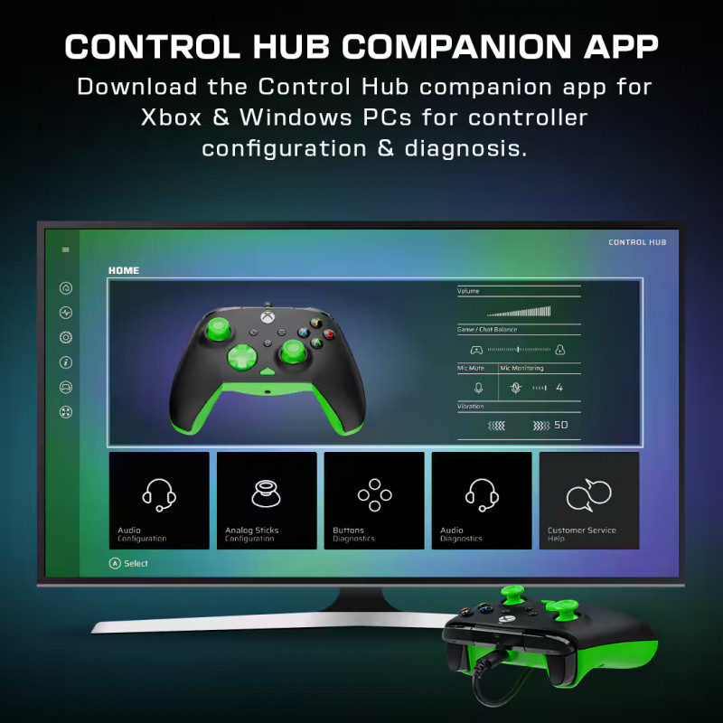 Download the Control Hub companion app available on Xbox consoles and Windows PCs for controller configuration & diagnosis.