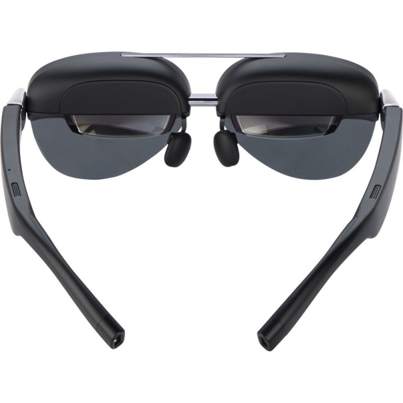 The glasses show content in 2D or 3D with up to 800 nits brightness and a colour space of 98% DCI-P3. An optional light shield improves visibility in distracting ambient light. Built-in sensors adjust the display to your movements and keep the image stable.