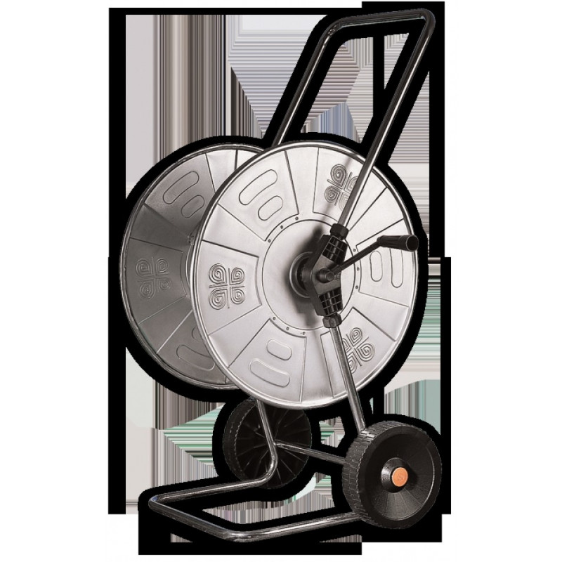Hose reel cart «ZINCATO» can store up to 110m of 1/2" hose. Equipped with stable and durable base. Major advantage of our reels is long handle which makes it easier to move. Angled hose connection prevents hose from wrapping, kinking or twisting , while winding on and off. Convenient handle. Large, easy spinning wheels with special profile to prevent slipping.