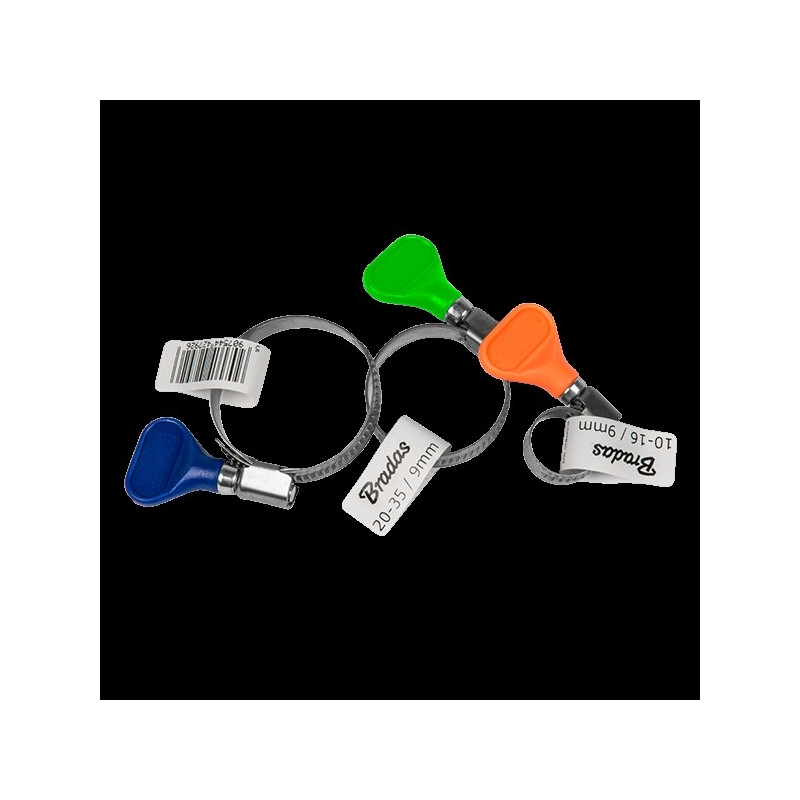 Stainless zebra hose clamps « BRADAS» 9mm with butterfly key. It is a top quality product made in line with the ISO9001 standards. Special clamp construction provides strength and tightness of connections. When applying GRIP clamps there is not even the slightest risk of damaging the hose. Plastic butterfly key facilitates easy clamp installation without tools.