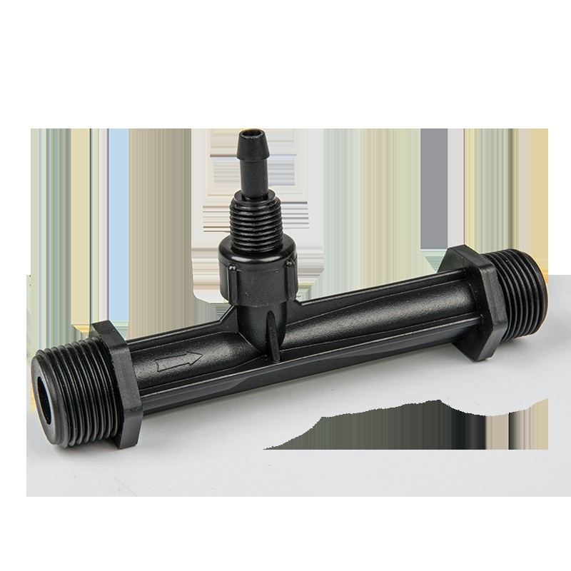 Injector for liquid fertilizer suction. Equipped with two 3/4" male thread and connection for suction assembly.