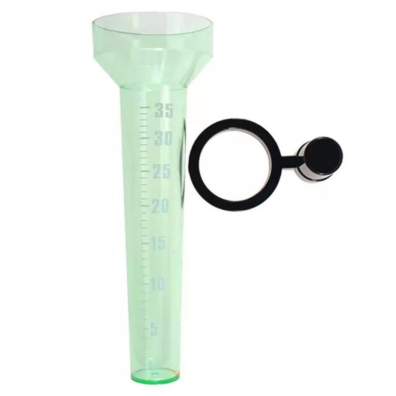 Kompaktowy miernik sumy opadów. Deszczomierz to proste i precyzyjne narzędzie, które umożliwia pomiar poziomu opadów do maksymalnie 35 litrów na metr kwadratowy (35l/m2). Wygodny sposób przeliczania wyników (każdy 1 mm deszczu w mierniku odpowiada za 1 litr deszczu na m2).