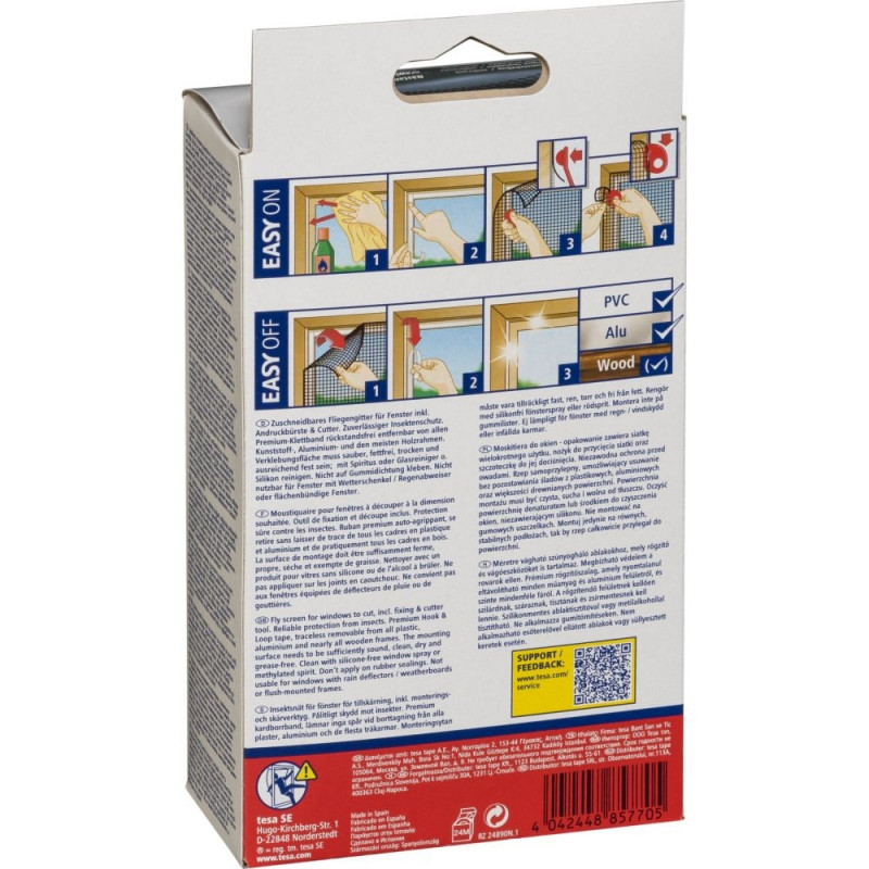 The tesa Insect Stop insect screen for windows from the Comfort series impresses with its high tesa quality and utilises advanced adhesive technology. It allows fresh air into the house while keeping insects out. A self-adhesive Velcro tape is used for secure attachment, which is attached to the window frame.