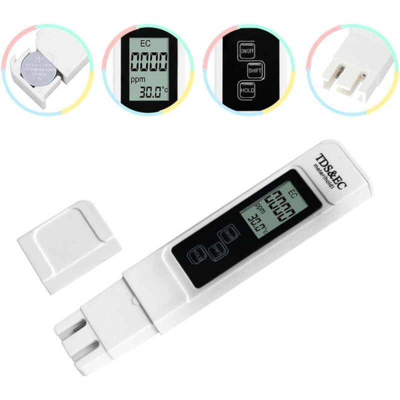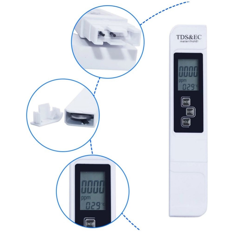 - Funkcje: TDS (Total Dissolved Solids - ilość rozpuszczonych w wodzie zanieczyszczeń) / EC (Przewodność wody)