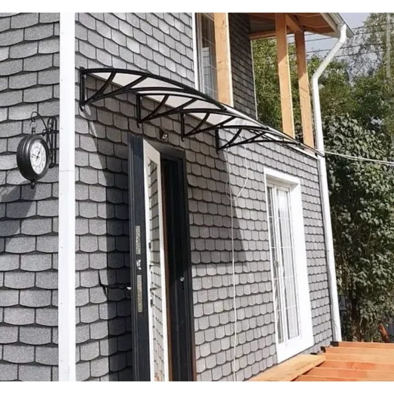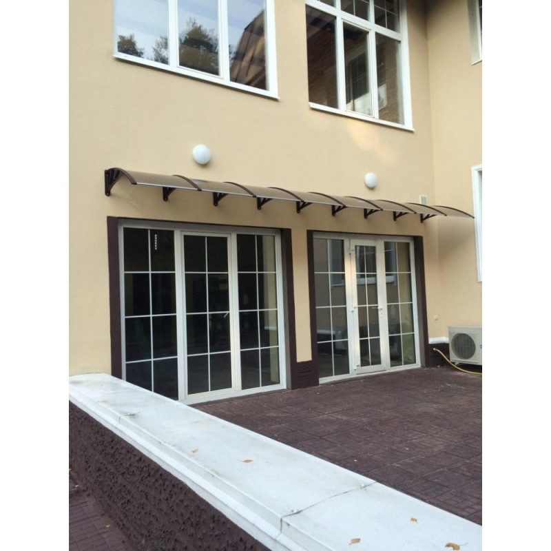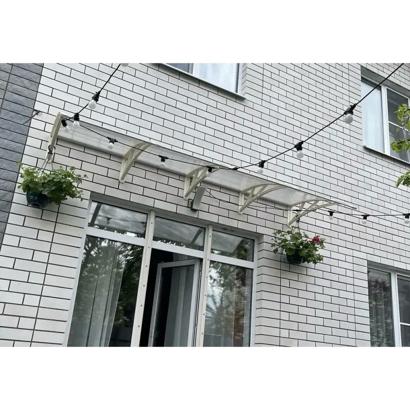 The ready-to-use canopy kits come with everything needed for installation above the door. The installation is straightforward and suitable for any type of door. Each section of the canopy can withstand a load of up to 100 kg. Thanks to its high stability, the canopy can endure snow, hail, icing, wind gusts, and temperature fluctuations. It does not rot, requires no maintenance, and does not need painting.