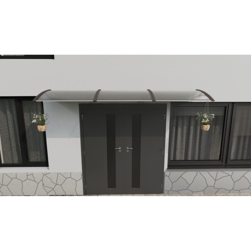 The ready-to-use canopy kits come with everything needed for installation above the door. The installation is straightforward and suitable for any type of door. Each section of the canopy can withstand a load of up to 100 kg. Thanks to its high stability, the canopy can endure snow, hail, icing, wind gusts, and temperature fluctuations. It does not rot, requires no maintenance, and does not need painting.