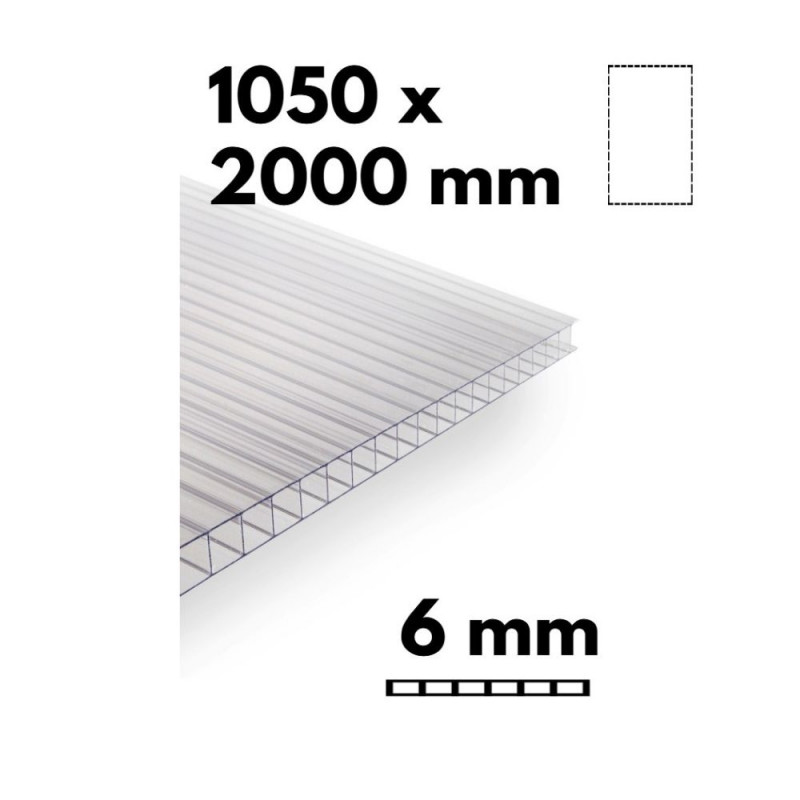 Piece of greenhouse multiwall sheet / clear polycarbonate 1050x2000mm - 6mm, 4pcs.