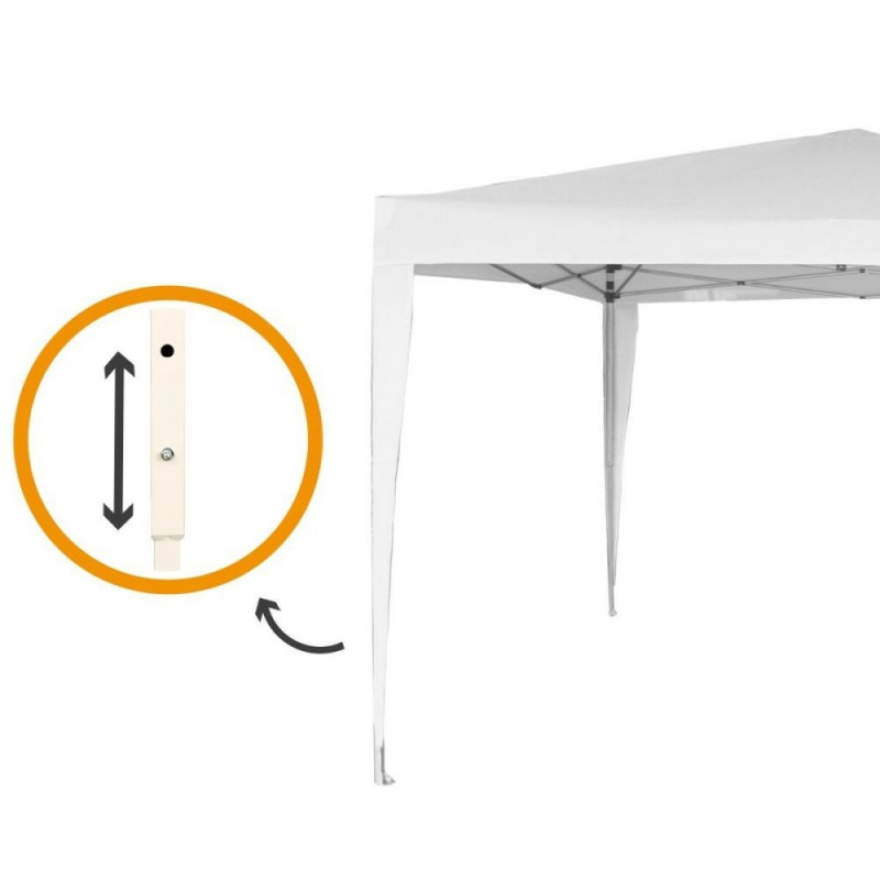 The Aktive folding gazebo is a versatile and practical solution for outdoor spaces, ideal for providing shade and shelter in gardens, terraces, or outdoor events. This gazebo features approximate dimensions of 300 x 300 x 250 cm, offering ample coverage to comfortably accommodate tables and chairs or create a protected area for relaxation and socializing. It is made with durable and sturdy materials that ensure stability and longevity: it includes a white polyester fabric that provides protection against solar radiation and a clean, bright appearance, while its frame is made of strong steel that guarantees firmness and resistance to variable weather conditions. Additionally, it has plastic components that facilitate assembly and folding, making it easy and convenient to handle, store, and transport when not in use. This smart and functional design combines quality materials with spacious dimensions, creating a pleasant and sheltered environment for domestic or professional use. The Aktive gazebo offers a practical solution without sacrificing strength and stability, suitable for those seeking a reliable and functional product to enjoy the outdoors with protection.