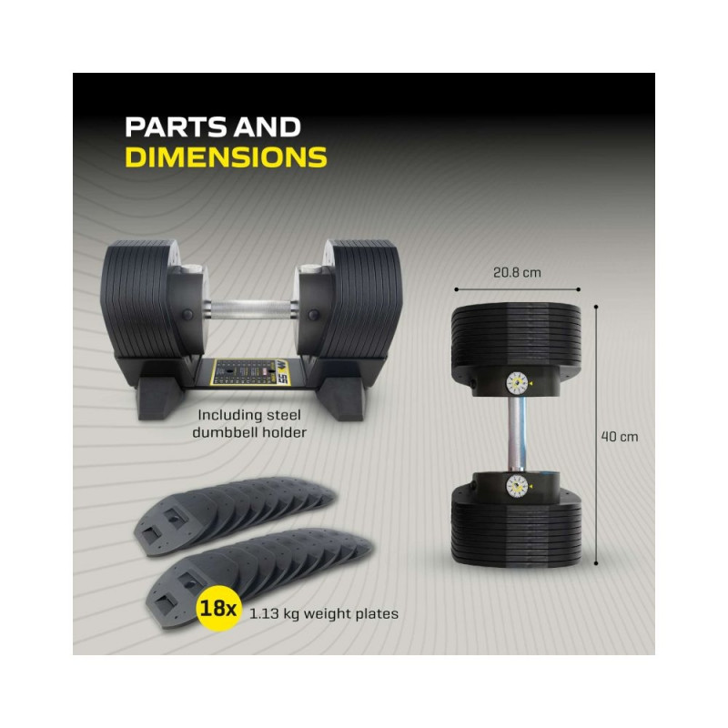 Reguleeritav hantel TUNTURI MX55 Dumbbell 4,5-24,9 kg, knurled
