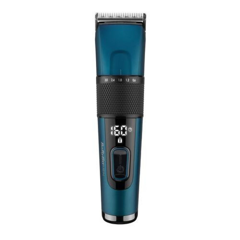 State-of-the-art hair clipper with precision engineered Japanese steel blades that have a unique super sharp cutting angle for ultra-smooth, effortless cutting even through longer, thicker hair. <br><br>Exceptional lithium-ion battery performance gives 160 minute cordless run time with sustained power even at lower charge levels. 3 hour fast charge. <br><br>Advanced digital screen displays battery life remaining and taper setting for ultra-precise cutting length control. With 45 cutting lengths from 0.6-28mm. <br><br>Removable washable blade for easy cleaning.BaByliss Japanese Steel Digital Hair Clipper. Product colour: Black, Teal, Housing material: Plastic, Minimum hair length: 0.6 mm. Power source: AC/Battery, Operating time: 160 min, Battery type: Built-in battery. Country of origin: China. Width: 45 mm, Depth: 45 mm, Height: 183 mm. Package width: 215 mm, Package depth: 95 mm, Package height: 279 mm