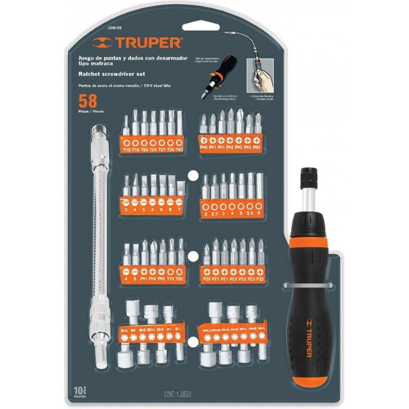 Ratcheting screwdriver & bits set 58pcs Truper®