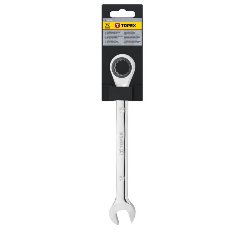 Klucz płasko-oczkowy z grzechotką, 15 mm