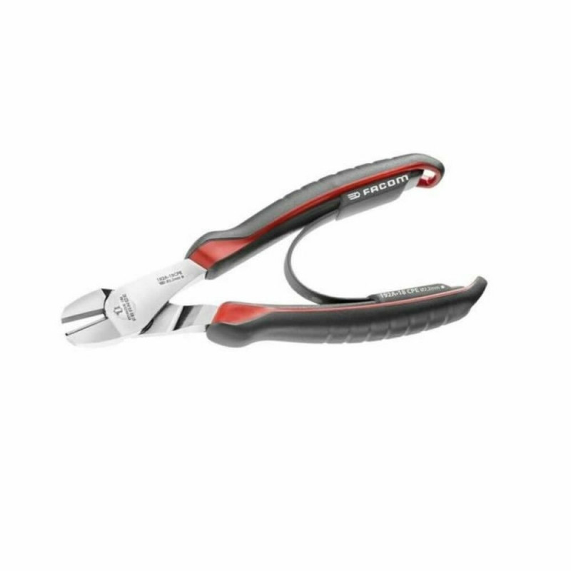 The FACOM diagonal cutting pliers of 180 mm are designed to deliver precision and durability in diagonal cutting tasks. They feature jaws made of plastic material combined with a grey finish, providing a good grip and wear resistance, ideal for electrical, electronic, or DIY work. Their 180 mm length allows comfortable handling and effective control when cutting wires, cables, or small metal components, ensuring clean and safe cuts. This Facom diagonal cutter is made for professional users and demanding hobbyists who require a reliable tool with recognized quality. Its robust structure guarantees continuous use without losing precision or power, adapting to different materials and thicknesses. The ergonomic design facilitates prolonged work while minimizing hand fatigue. In short, the FACOM 180 mm diagonal cutting pliers are a versatile and durable tool offering performance and safety for a wide range of technical and domestic applications.