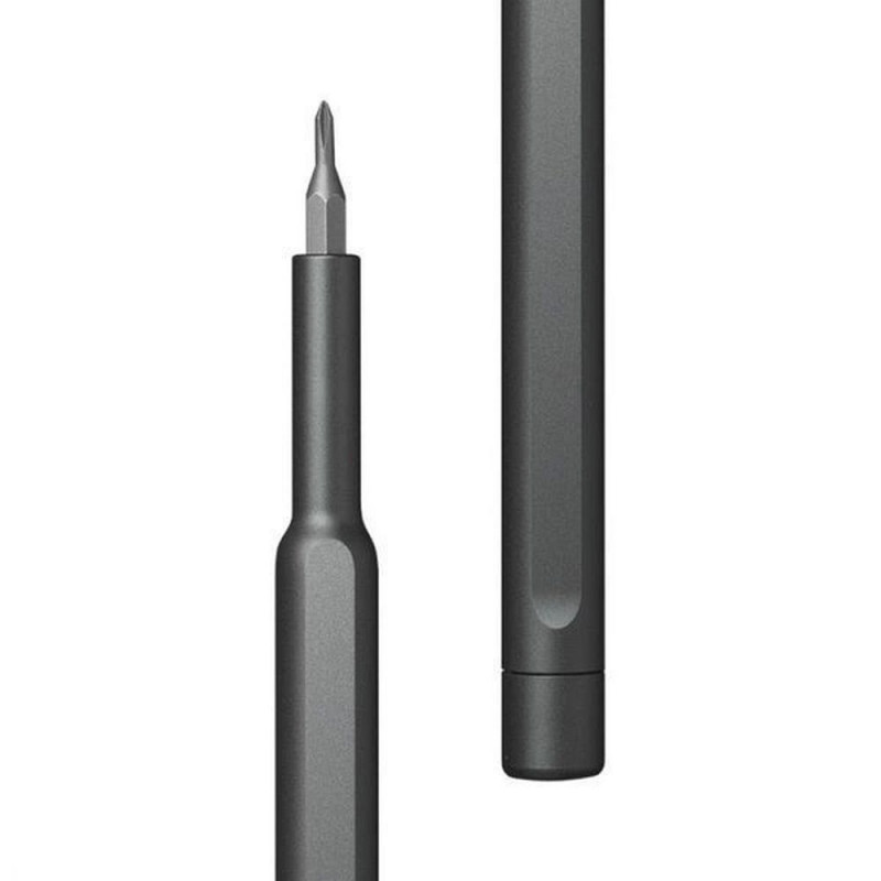 Compact and elegant design: Slim screwdriver design with aluminum housing and magnetic bit holder.