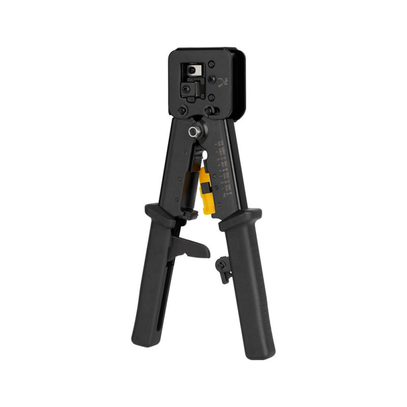 Uniwersalny zaciskaczPosiadając to narzędzie możesz z łatwością zarabiać i zaciskać wtyki. Funkcjonalność narzędzia zwiększa także wbudowany nożyk pozwalający na obcinanie przewodów i ściąganie izolacji z kabli.