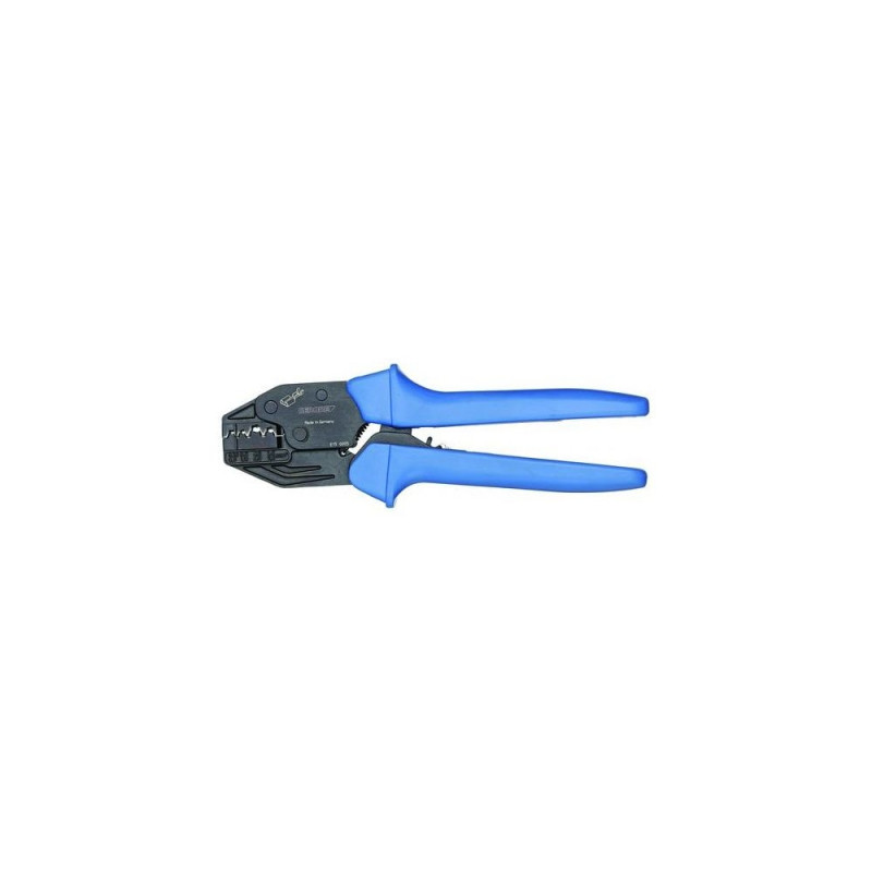 For non-insulated contacts with open crimping sleeve, such as flat plugs F 2.8, F4.8, F6.3 and F 9.5<br>Easy to handle<br>Releasable positive locking<br>Kind-to-hands formed handles<br>GEDORE special steel, gun-metal finish<Product has been archived
