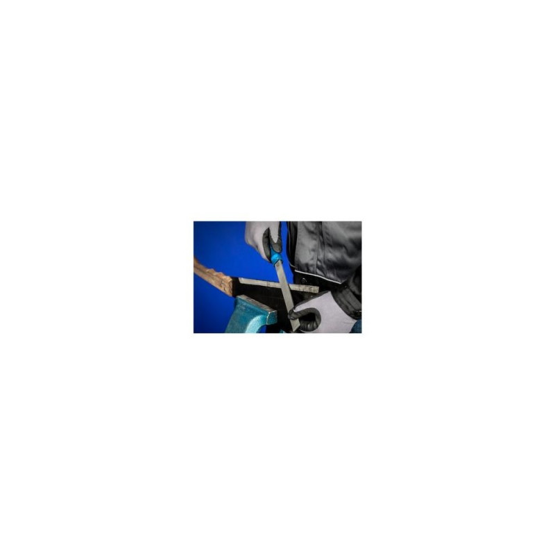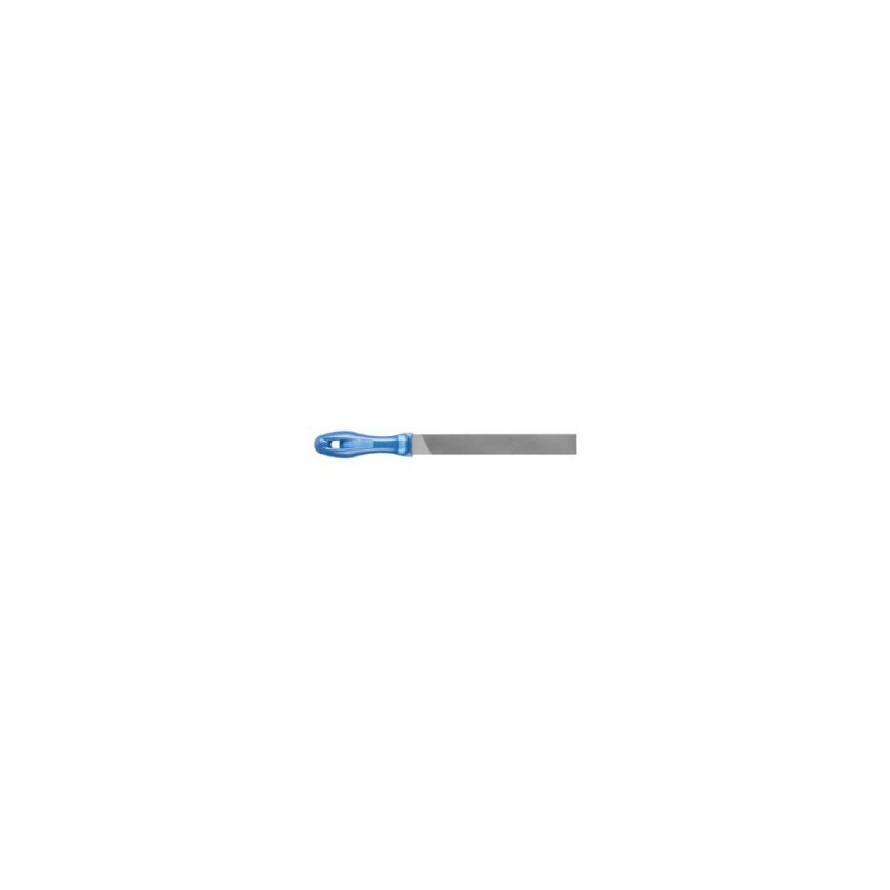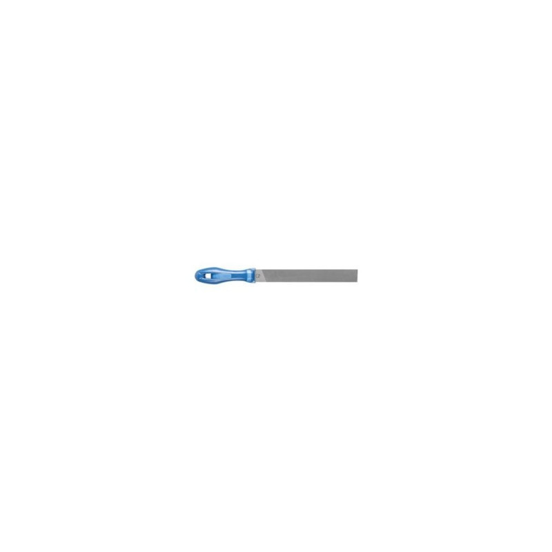 Rectangular file with different cuts on three sides. Version with tang and ergonomic file handle. Cross cut 1 on front side for roughing, single cut 2 on back side and edge for sharpening.<br>Materials that can be worked:<br>Aluminium<Product has been archived
