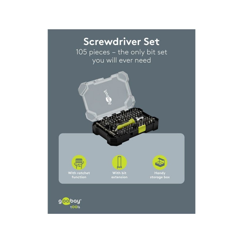 Goobay Tools Screwdriver Set with 100-Piece Bit Set