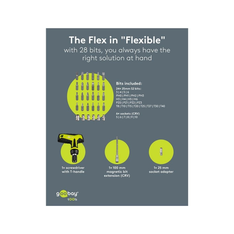 Goobay Tools Screwdriver Set with 30-Piece Bit Set