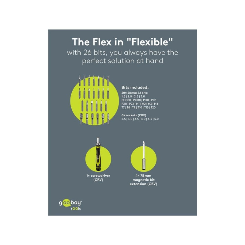 Goobay Tools Screwdriver Set with 26-Piece Bit Set