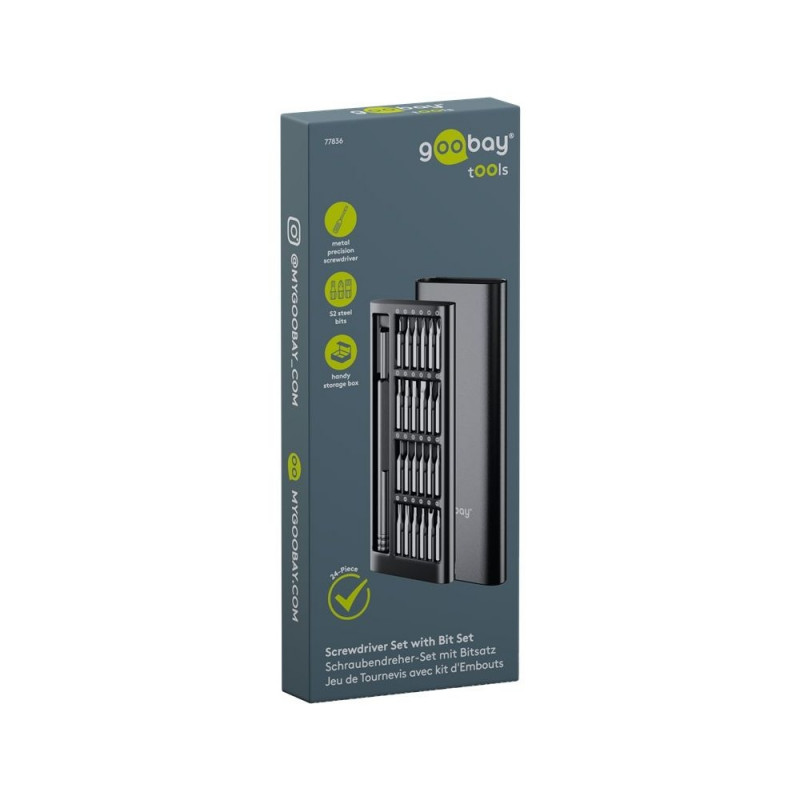 Goobay Tools Screwdriver Set with 24-Piece Precision Bit Set