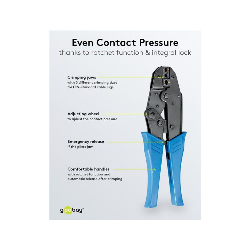 | Description | The crimping pliers are the ideal tool for making strong, long-lasting cable connections. With its robust design and easy handling, it is ideally designed for daily use in the workshop and in the DIY area. |