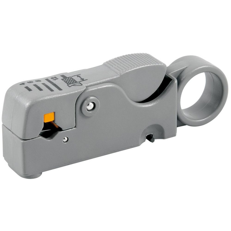 | Description | Flexible and easy to use: Just insert the cable into the tool, press it closed and turn it using the finger loop until you've cut throughthe sheath and insulation/dielectric. The wire and insulation are exposed separately, quickly and with little effort. |