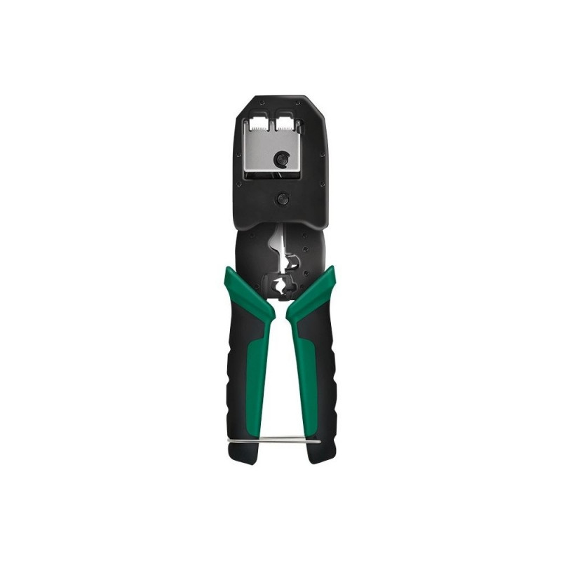 These high-quality crimping pliers are the perfect tool for network and telephone installations. It supports RJ11, RJ12 and RJ45 modular plugs (Cat.3, Cat.5e, Cat.6, Cat.7) and is also suitable for RJ45 plugs with clip (Cat.6A, Cat.7). Thanks to its precise mechanics, it enables crimping, cutting and stripping in a single operation - cleanly, efficiently and reliably.