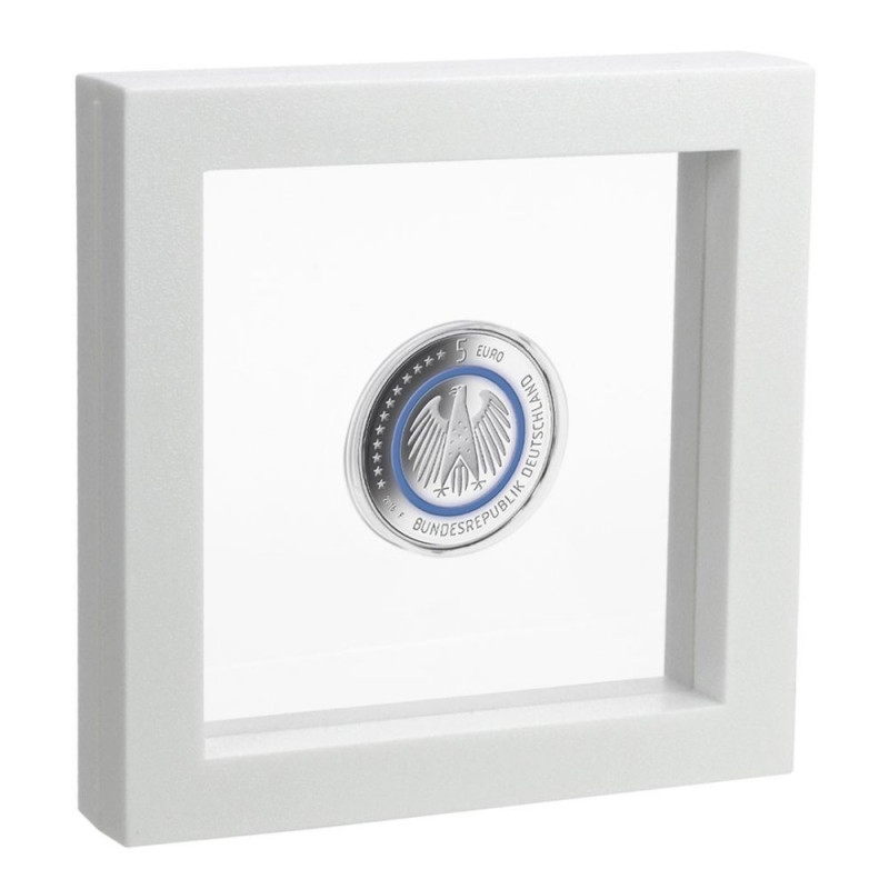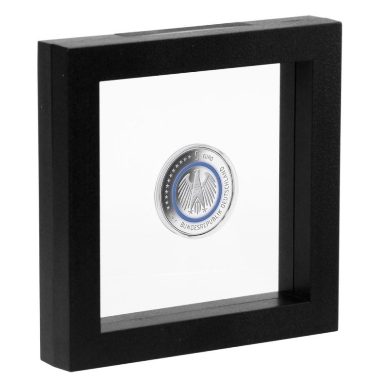 Display your coins to their best advantage in these 3D foating frames. The coins (in capsules) are held between two crystal clear silicone membrane films and are held firmly in place. Frames are suitable also for other small collectibles. Each frame has a plastic catch to ensure secure closure.