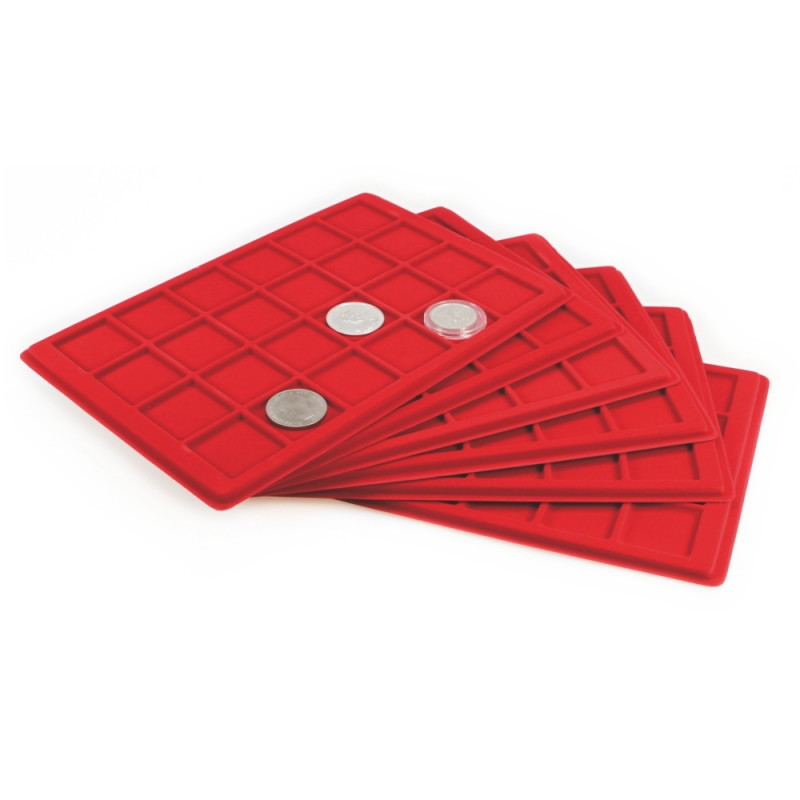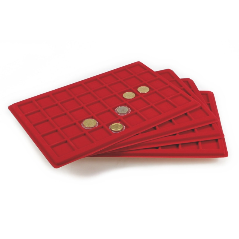 - Luxurious red velvet trays.