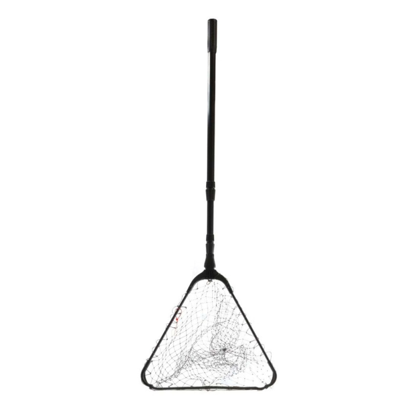 Classic, foldable landing net with a triangular rim and a strong, plastic head with monofilament net. Aluminium telescopic handle . Light and nearly indestructible landing net .