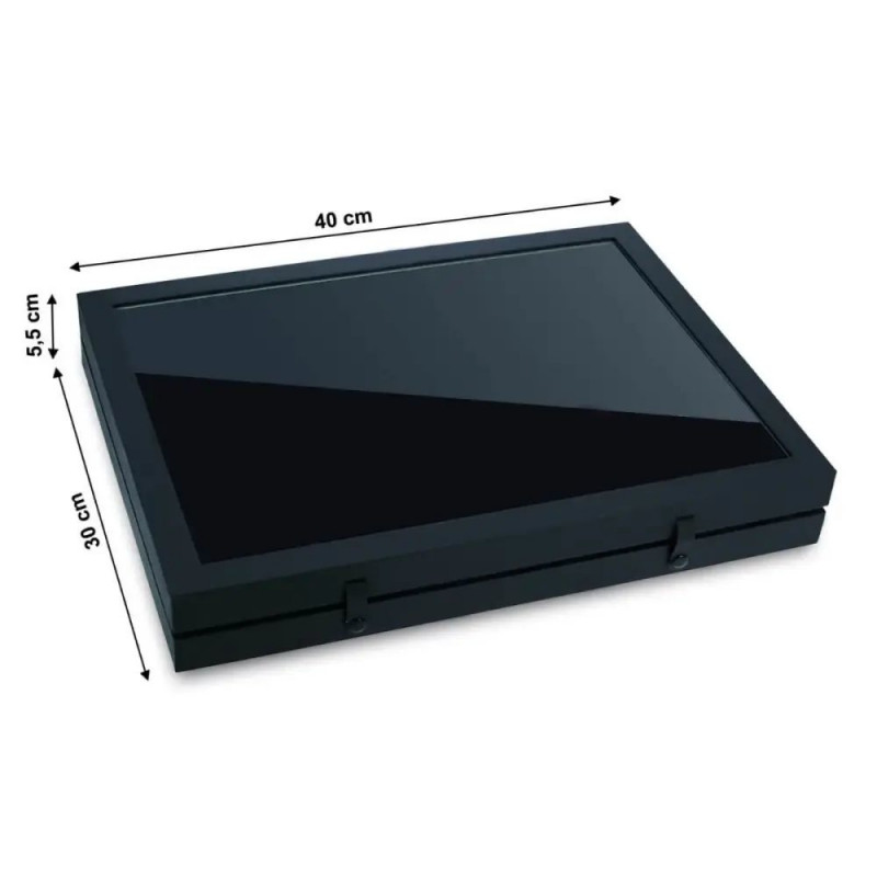 - Klaasist kaas ja tugev korpus, mis on kaetud mattmusta linase erikangaga.