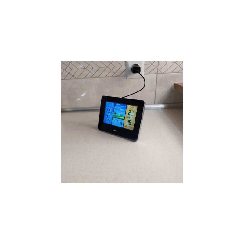 Nowoczesna, wielofunkcyjna stacja pogody z dużym i czytelnym wyświetlaczem LCD jest intuicyjna i prosta w obsłudze. Doskonale sprawdzi się w każdym domu, mieszkaniu, biurze. Dzięki podpórce można postawić ją w dowolnym miejscu, na biurku, stole, lodówce, półce. Zajmuje niewiele miejsca i świetnie wpasowuje się w wystrój pomieszczeń przez swój subtelny wygląd.