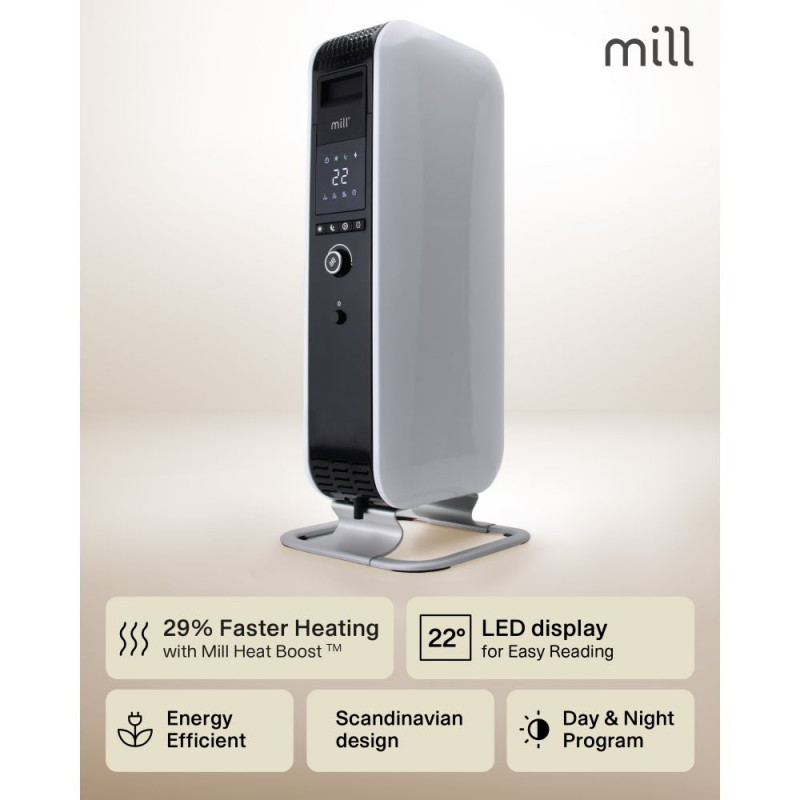 Eritunnused Compared to ordinary oil filled radiators, our Mill Oil series are much more effective because of the closed structure of the heater which makes a unique chimney effect (patented “Heat boost” technology). For instance, our Mill Oil 1000W is as effective a