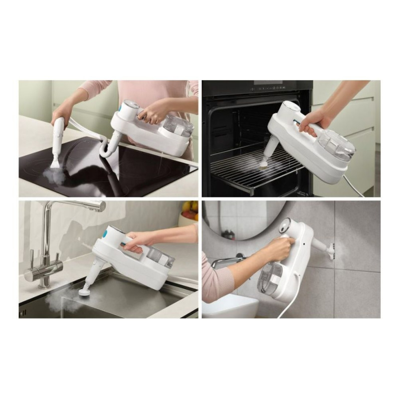 The detachable handheld unit with a wide range of attachments is an excellent tool for easy cleaning throughout your home. The combination of high pressure and hot steam effectively sanitises all surfaces, ensuring a hygienically clean environment quickly and effortlessly.