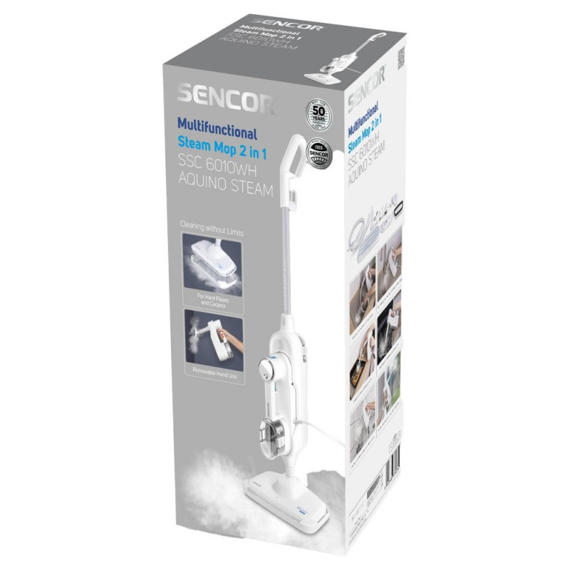 Looking to achieve a perfectly clean home? Meet the Sencor SSC 6010WH, a powerful 2-in-1 multifunction steam mop. This steam mop and handheld cleaner in one with 1,500 W of cleaning power will effectively help you to completely clean and disinfect your home. From hard floors to rugs, runners, and low-pile carpets, the steam mop cleans and disinfects with ease. With a convenient detachable handheld unit and a wide range of accessories, you can easily clean sanitary surfaces. It’s perfect for sinks, taps, shower enclosures, grout, and toilets, as well as radiators, grills, upholstery, and glass surfaces like windows and mirrors. It’s even perfect for cleaning curtains, drapes, and other textiles. Hot steam effectively removes dirt, dissolves grease and disinfects various surfaces and materials. Steam cleaning is highly effective, leaving surfaces impeccably clean and hygienic.