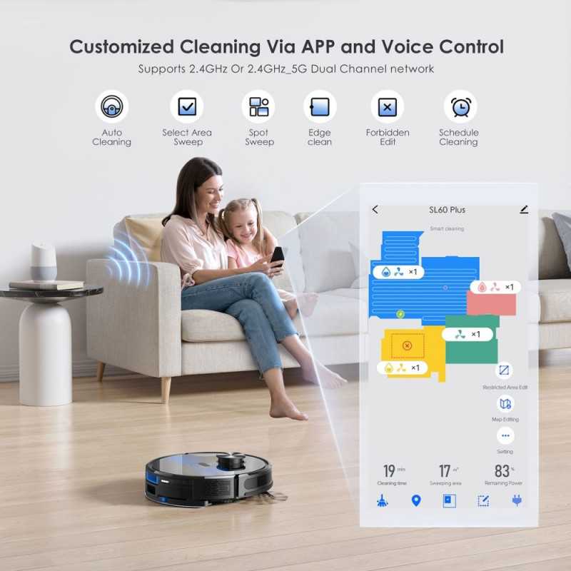 This robot isn’t just smart — it’s self-reliant. Whether you live in a busy family home or minimalist apartment, the SL60 Plus adapts to your space, learns over time, and delivers clean floors every single day.