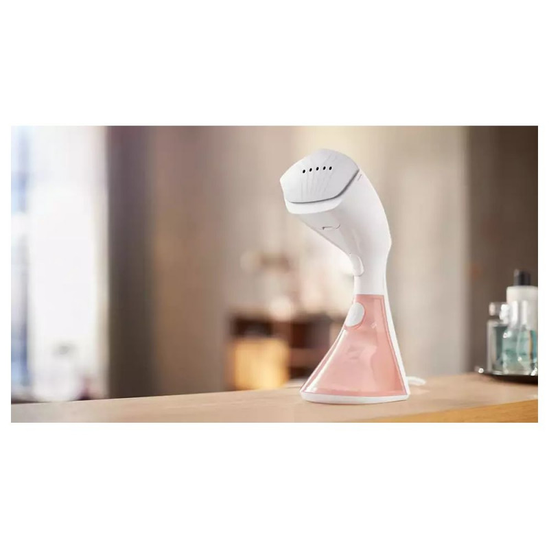 The Philips GC801/10 Portable Steam Cleaner delivers fast and easy garment care, refreshing your clothes with the power of steam. With a 1600W motor and continuous steam of up to 30 g/min, it effectively removes wrinkles, eliminates odors, and kills up to 99.9% of bacteria. Ready to use in just 45 seconds, it’s perfect for quick touch-ups and delicate fabrics. The 230 ml detachable water tank ensures convenience, while its compact and lightweight design makes it easy to handle or carry when traveling. Comes in elegant pink and white colors with a fabric brush attachment for thicker textiles.