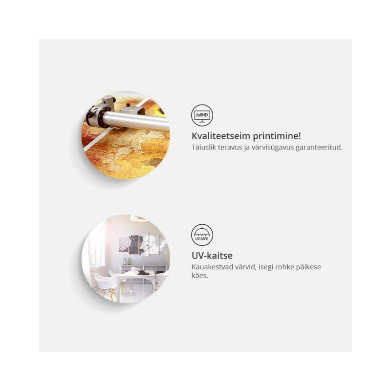 Spetsiaalne lõuend, kõrge resolutsiooniga digitaaltrükk ja kaasaegne tehnoloogia annavad seinapildile kirka teravuse ja sügavad värvid.