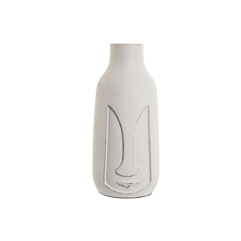 Vase Home ESPRIT White Mango wood Modern Face 15 x 15 x 30 cm