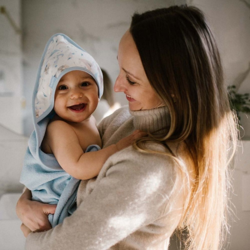 Thanks to the 100% frotte cotton, the product can perfectly absorb water, not irritating the baby’s soft skin.