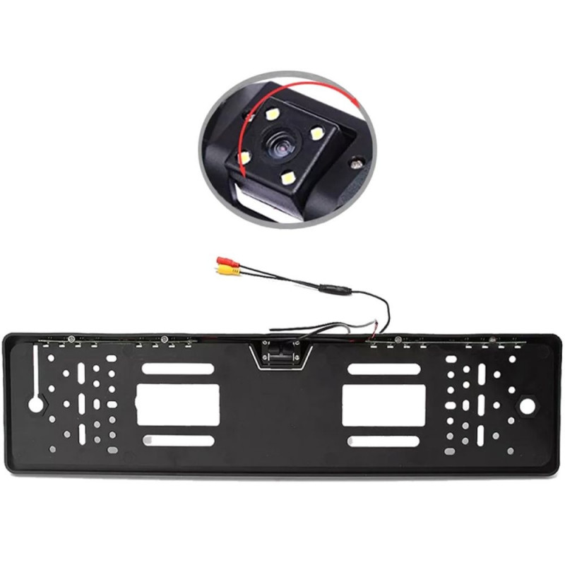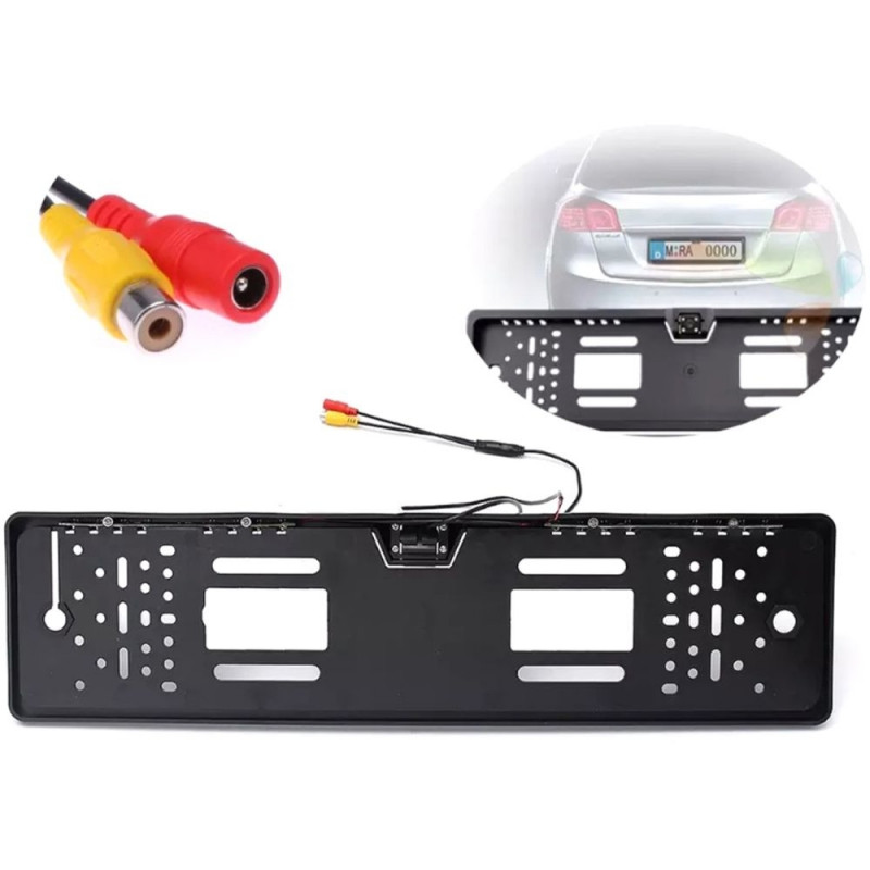Samochodowa kamera cofania wbudowana w ramkę tablicy rejestracyjnej. Bardzo praktyczne rozwiązanie, nie zajmujące wiele miejsca dzięki ukryciu kamery w ramce tablicy. Dzięki temu kamera jest umieszczona w idealnej pozycji i znacznie ułatwia parkowanie, wykrywając nawet nisko położone przeszkody których nie jesteśmy w stanie zauważyć korzystając z lusterka wstecznego bądź tylnej szyby. Dołączony komplet okablowania umożliwia szybkie i komfortowe podłączenie całego urządzenia do dowolnego monitora wyposażonego w standardowe wejście Video.
