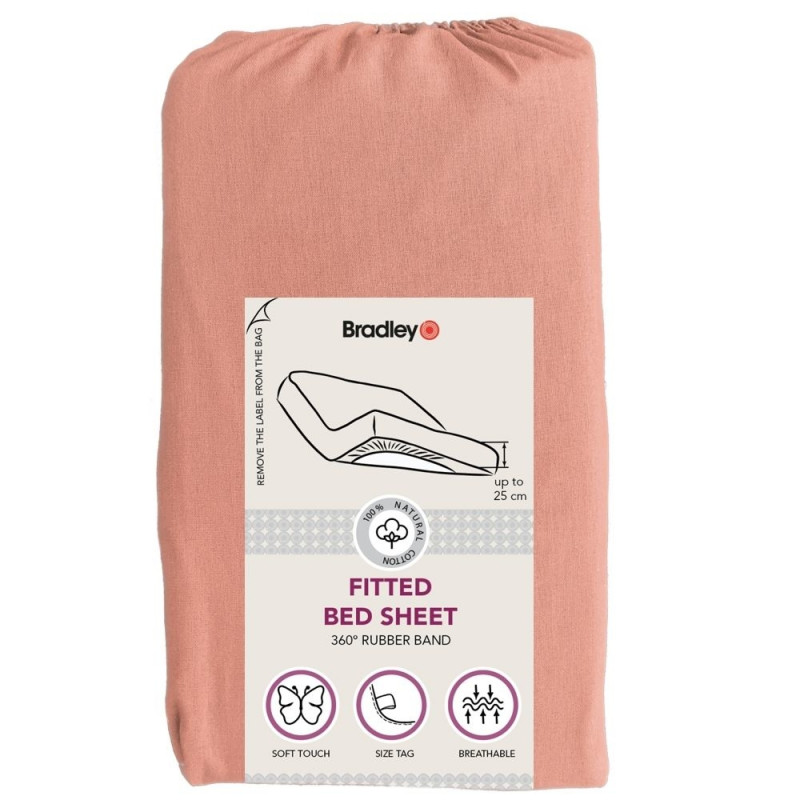 Bradley kummiga voodilina, 180 x 200 x 25 cm, tekstiilist kotis, põlenud korall