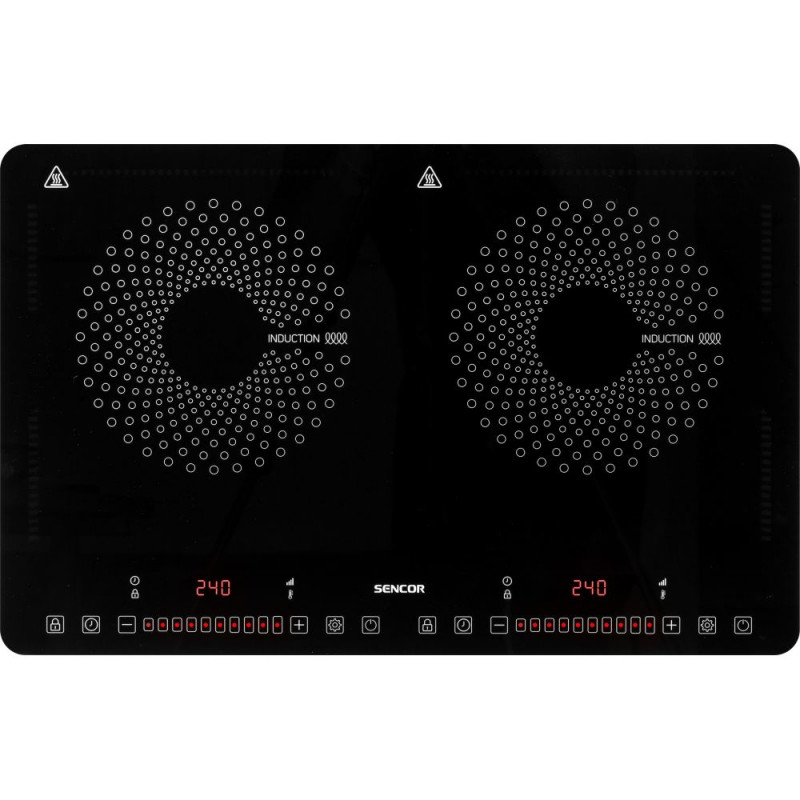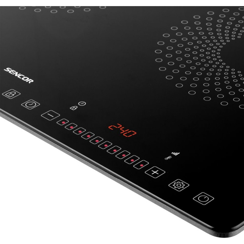 The cooktop and individual functions are controlled using touch buttons. Temperature and power is simply adjusted by moving your finger left or right, i.e. slider. Large red-backlit LCD display provides information about temperature and power.