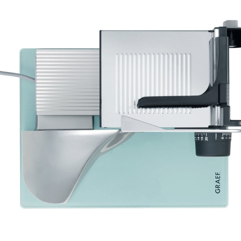 - Dantytas grūdinto plieno peilis (idealiai pjausto duoną, mėsos produktus, sūrį), Ø 170 mm skersmens peilis - lengvai ir saugiau nuimamas