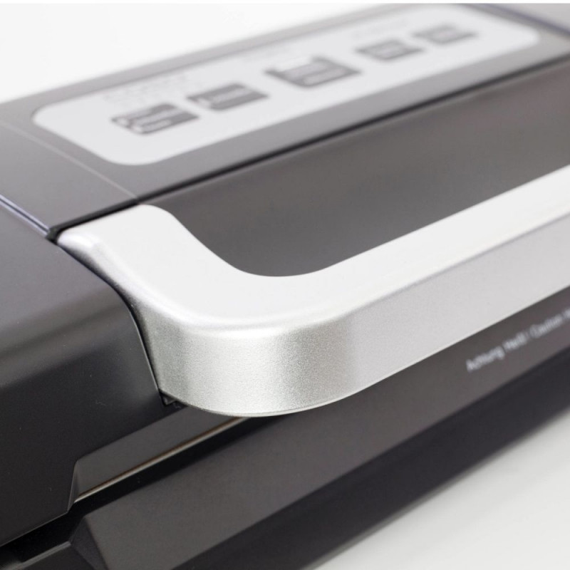 | Muud funktsioonid | Powerful and durable vacuum pump with up to 9 litres / min and a max. vacuum of -0.75 bar. Airtight sealing for foils up to 30 cm wide and with extra thick weld seam (2.5 mm). Removable Drip tray. Simple tracking of progress with the aid of the LED proces |