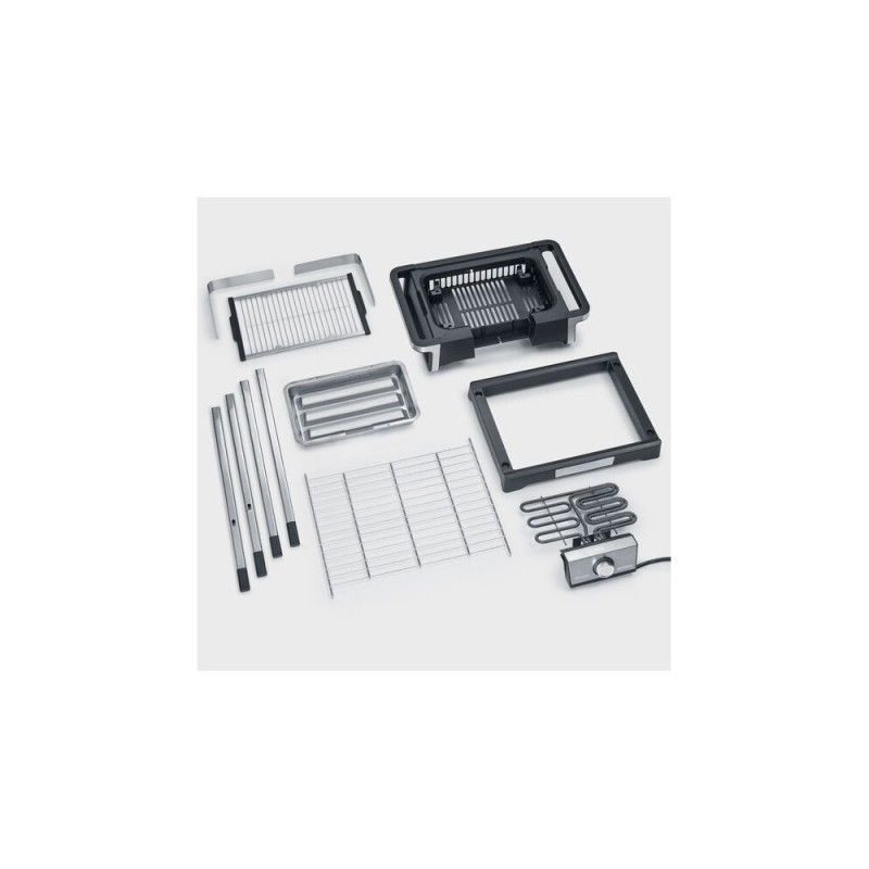 - No risk of burns on any surface, thanks to the SafeTouch housing - Quick grill start: from 0 to 500 ° C in just 10 minutes - BoostZone - 500 ° C for perfect brandings. Full power through double heating technology - Stable stand frame with storage grate - Can also be used as a table grill- Power: total 3,000 W. - Color: stainless steel-black - Dimensions of the grill area approx. 41.5 x 24 cm (approx. 996 cm²) - Supply line: 2.00 m - Safety microswitch, heating element switches off automatically when removed - LED light for status display (orange = grilling, red = BoostZone) - Grill temperature: up to 500 ° C - Product dimensions without stand: 62 x 24 x 41cm - Product dimensions with stand base: 62 x 91 x 50cm - Working height approx. 85cm - Weight about 6.5 kg - Gross weight (including packaging) approx. 9.8 kg - Dimensions packaging: 80.1 x 29.7 x 45.5 cm