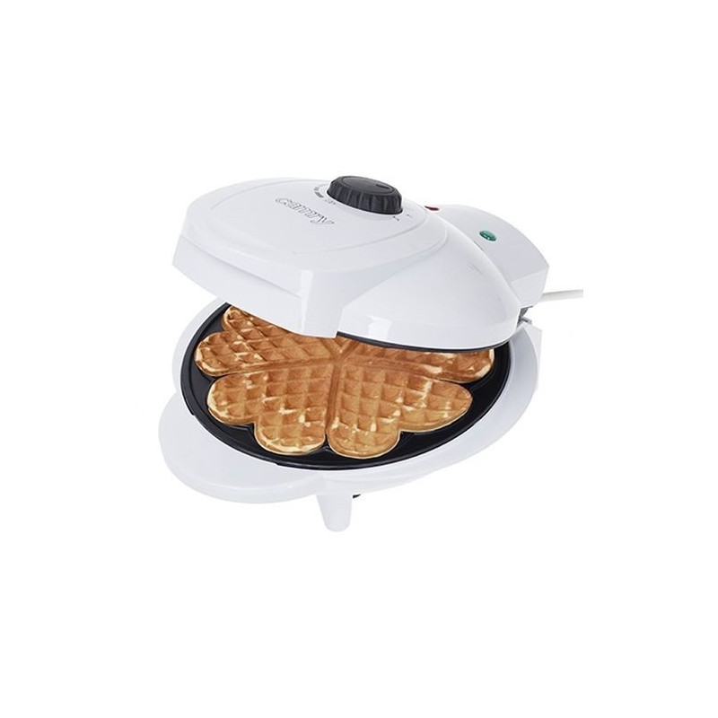 Waffle maker rated at 1000 W, equipped with a thermostat. Is perfect for preparing crunchy waffles. It prepares 5 heart-shaped waffles at the same time. It is equipped with coated plates what makes clearing very easy. It is also very easy to transport thanks to cord storage and ability to stand upright.