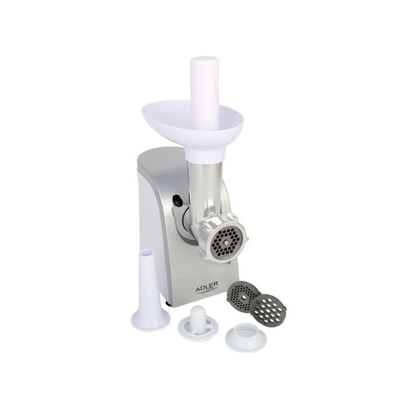 A solid device for those who wish to prepare home made sausages and ground meat. In the set a plunger and sausage filler are also included. The whole device is made of durable materials that are easy to be disassembled and cleaned. Apart from the forward mode it has a reverse function. Normally the device is rated at maximum 350W with the leverage power of 1500W.